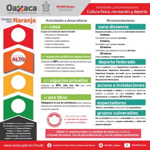El también titular de los Servicios de Salud de Oaxaca (SSO), Márquez Heine, reconoció que el semáforo deportivo que maneja el Incude Oaxaca, es adecuado para la práctica deportiva, pues está apegado a las disposiciones sanitarias a nivel local, nacional e internacional.