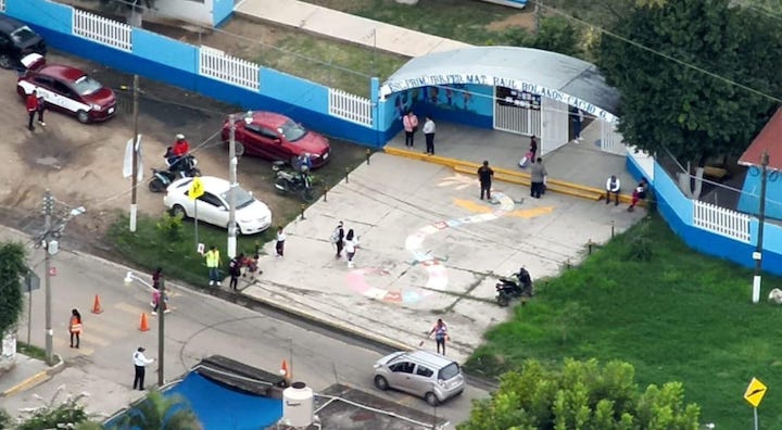 La vigilancia de esta mañana se concentró en los siguientes puntos: Escuela Secundaria Técnica número 64 y Primaria Leona Vicario, de Oaxaca de Juárez; Primaria Raúl Bolaños Cacho, Escuela Secundaria Técnica número 216 y Secundaria Niños Héroes de Chapultepec, en Santa Cruz Xoxocotlán; así como en la Secundaria Valladolid de San Antonio de la Cal.
