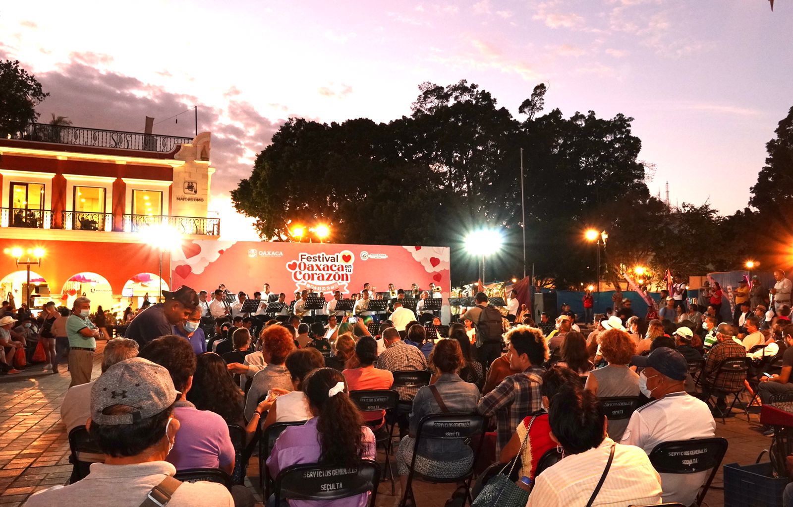 Oaxaca de Juárez, Oax. 28 de febrero de 2023.- El “Festival Oaxaca en tu Corazón”, realizado en el Zócalo de la Ciudad capital, del 13 al 26 de febrero, registró la asistencia de más de cinco mil personas en los diferentes talleres, conciertos, lecturas y presentaciones artísticas que tuvieron lugar.