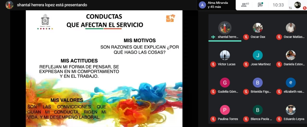 Mediante la guía de la maestra Shantal Stephanie Herrera López, integrante de la Unidad de Desarrollo Profesional, el personal comprendió a lo largo de dos sesiones, los conceptos del servicio público, y conoció las características del usuario para brindar calidad y calidez, siguiendo el protocolo de atención.
