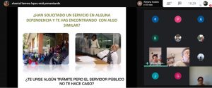 De manera virtual, mujeres y hombres de esta dependencia participaron en este ejercicio que tuvo como fin reconocer la importante labor que realizan dentro de la dependencia y la responsabilidad que tienen como servidoras y servidores públicos, para atender de manera cordial, atenta, competente y con calidez humana.