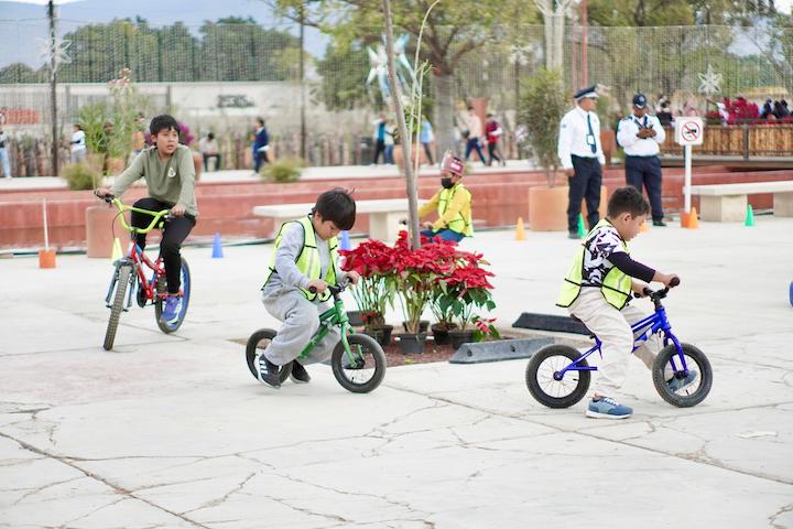 A partir de las 16:00 horas, cada espacio de este parque recuperado para el pueblo oaxaqueño, se distinguió por las sonrisas y gritos de felicidad que contagiaban las niñas y niños que disfrutaban del brincolín, los circuitos viales o los futbolitos, entre otras actividades deportivas.