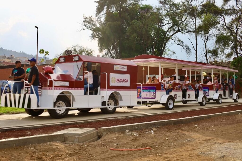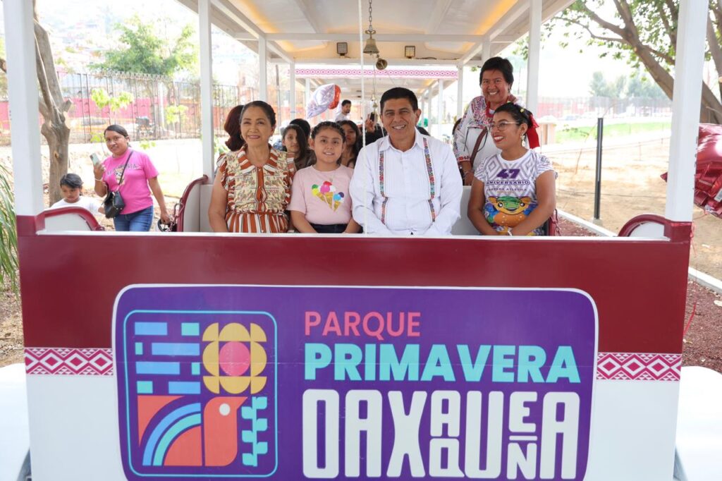 El Gobernador del Estado, Salomón Jara Cruz y la Presidenta Honoraria del organismo estatal, Irma Bolaños Quijano convivieron con las niñas y niños en el recorrido de inauguración del trenecito que se pasea por todos los espacios de este parque público.