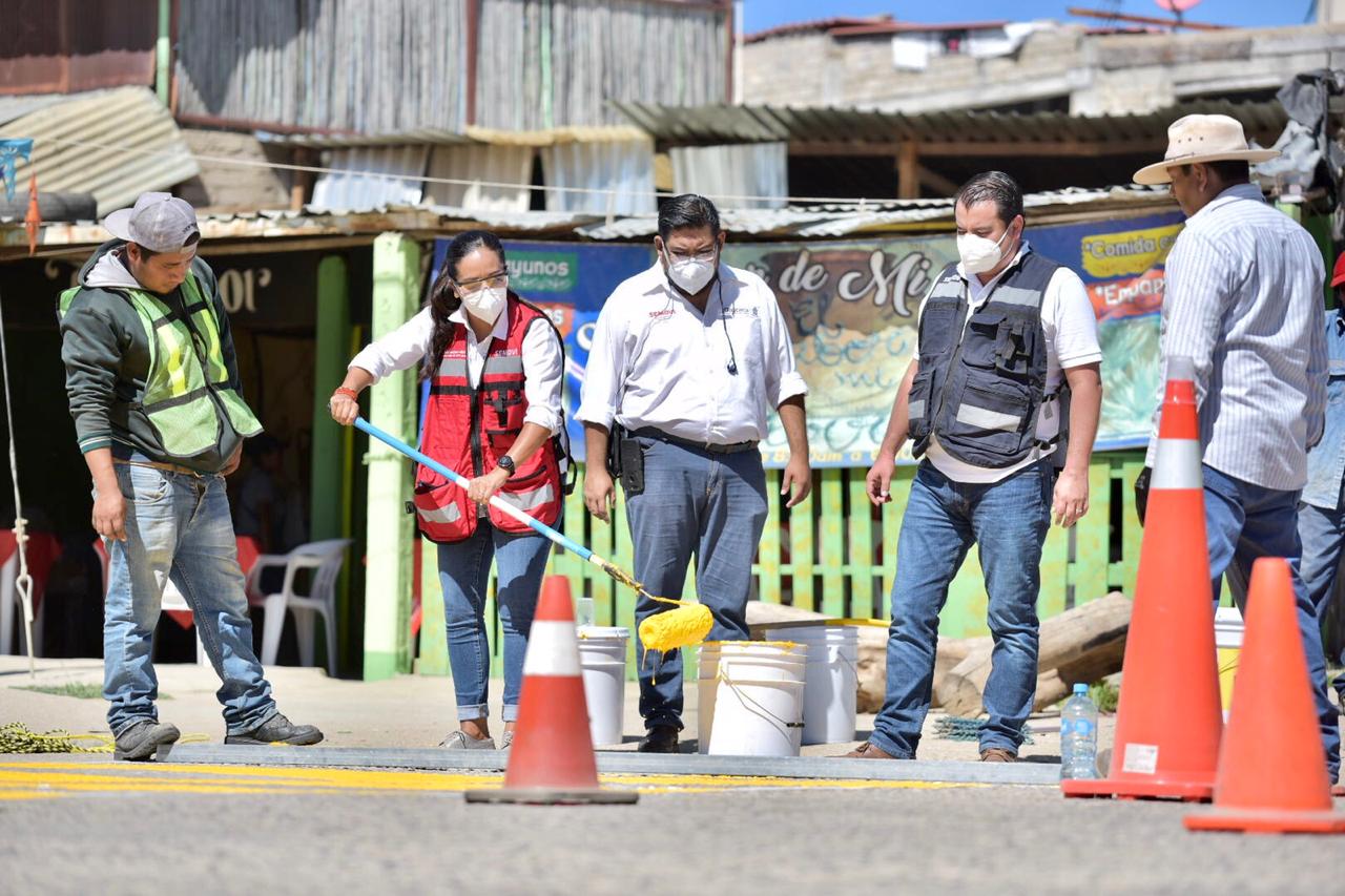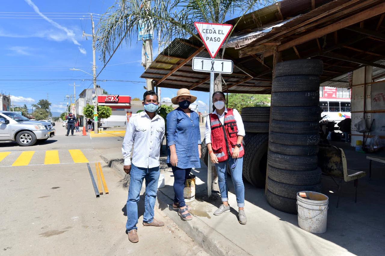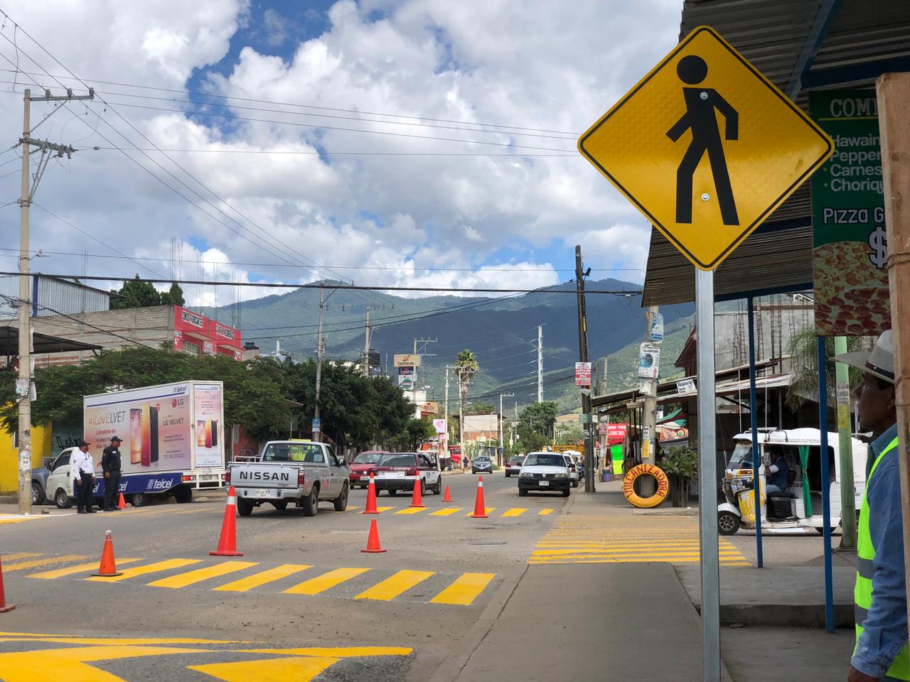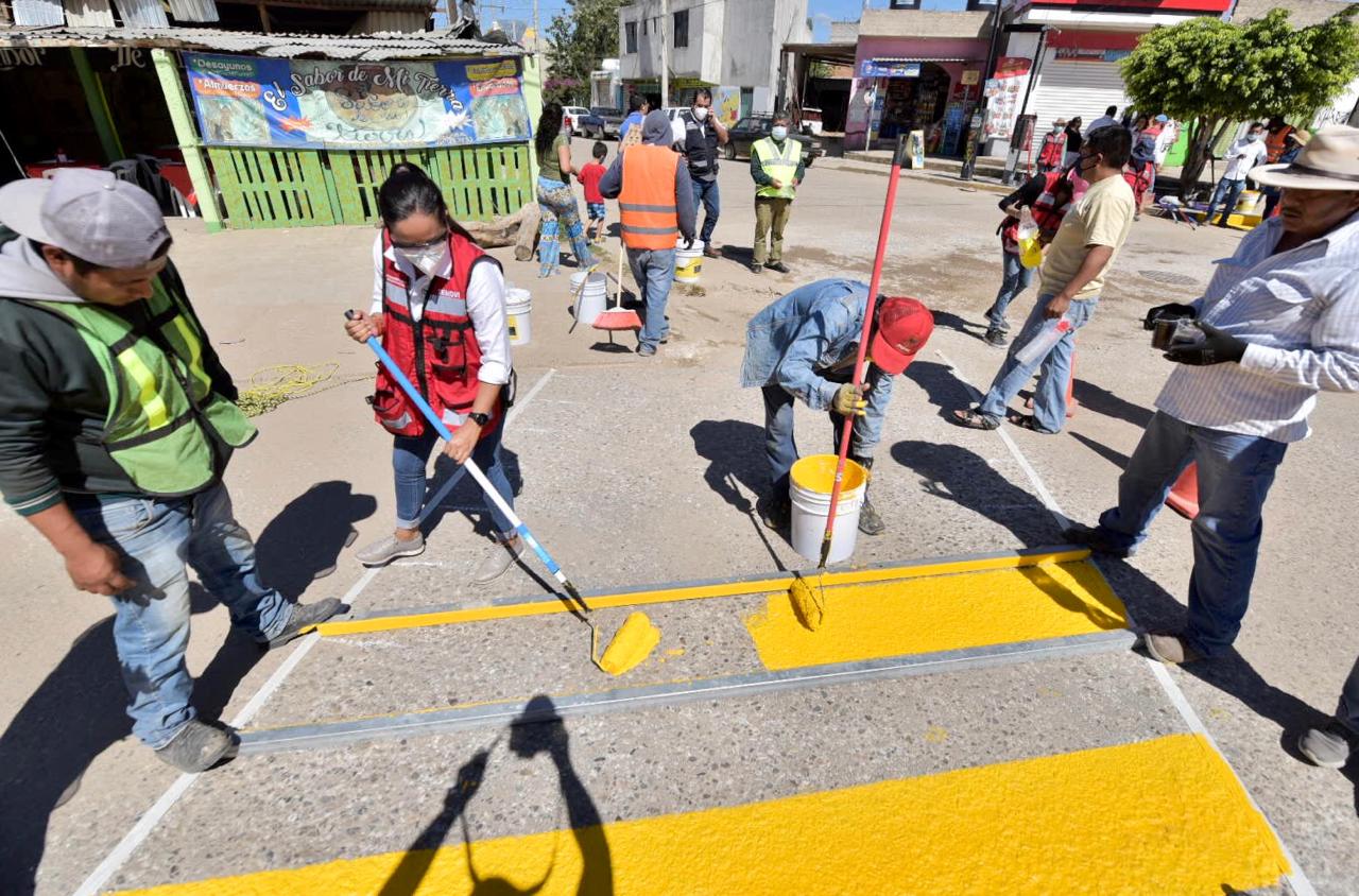 Oaxaca de Juárez, Oax. 15 de octubre de 2020.- Con el fin de lograr espacios peatonales seguros para los habitantes de la agencia municipal de Pueblo Nuevo, perteneciente a la capital oaxaqueña, se realizaron trabajos de pintura y colocación de señalética en el cruce de la calle Genaro Vázquez y Camino a Viguera.