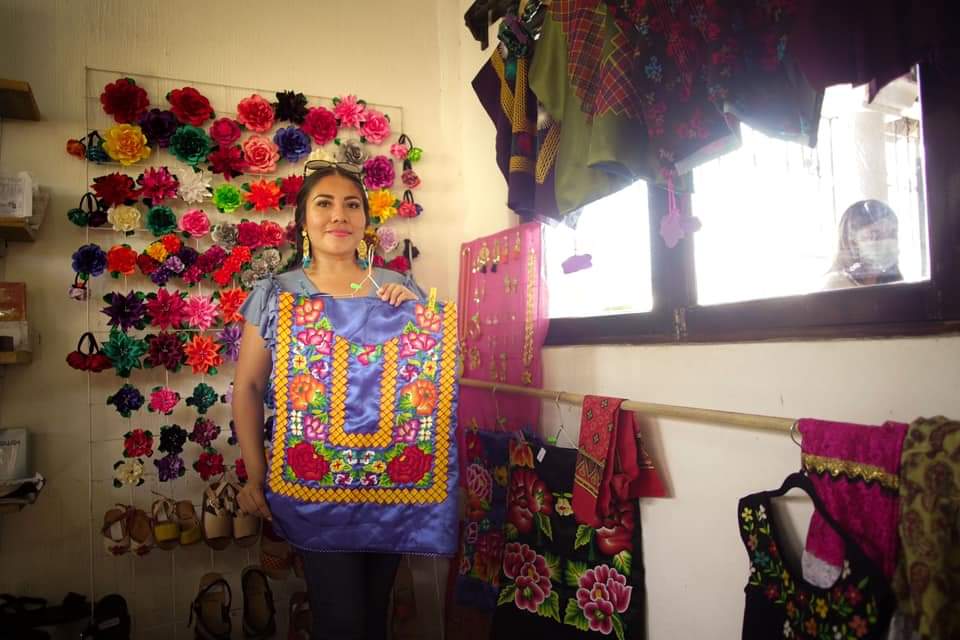 “Las blusas, por los bordados, son las que más se reconocen y buscamos dar a conocer otras prendas que se realizan con otras técnicas con gabanes, rebozos tejidos en telar y teñidos”, indicó Mayra Díaz.