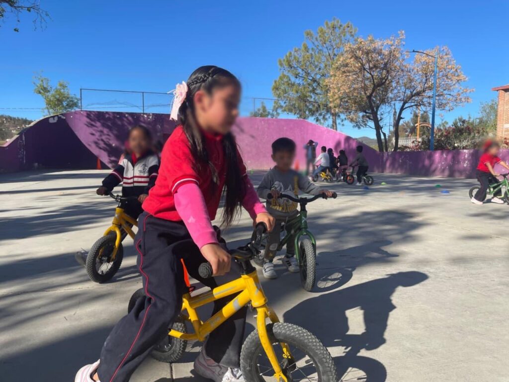 Niñas y niños de Nochixtlán participan en Taller Bici Balance impartido por Semovi