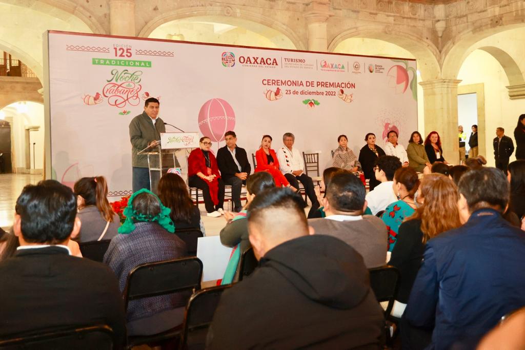 Luego del recorrido, el Gobernador de Oaxaca encabezó junto al Presidente Municipal, Francisco Martínez Neri la ceremonia de premiación de esta tradición única en el país y el mundo, que se enmarca en los ejes estratégicos de Política pública para la construcción de las bases para el desarrollo integral sustentable de las ocho regiones de Oaxaca y en el Eje transversal de la interculturalidad.