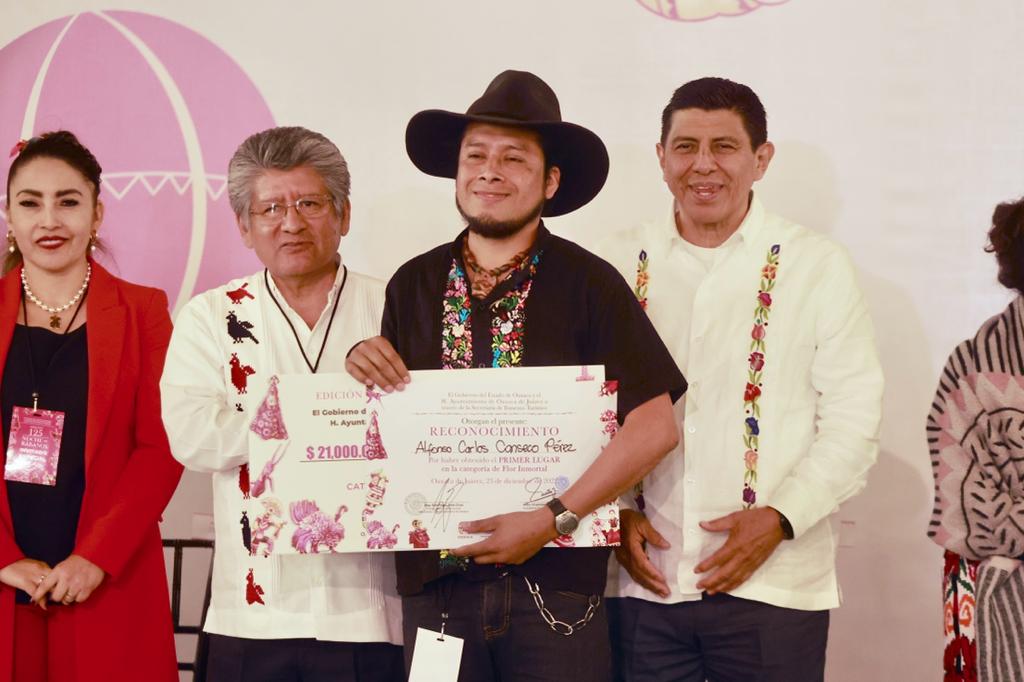 En la modalidad de Flor Inmortal categoría única, Alfonso Carlos Canseco Pérez, obtuvo el primer lugar con “La máquina que fortaleció el telar de Huaxyacac”; mientras que el segundo sitio fue para Francisca Lidia Sánchez Mateos, con su obra “Veneración a las 3 vírgenes: Juquila, Soledad y Guadalupe; en tanto Monserrat Maricela Raymundo Sánchez, fue galardonada con el tercer lugar con el tema “Máscaras y Danza de los Rubios de Santiago Juxtlahuaca, Oaxaca”.