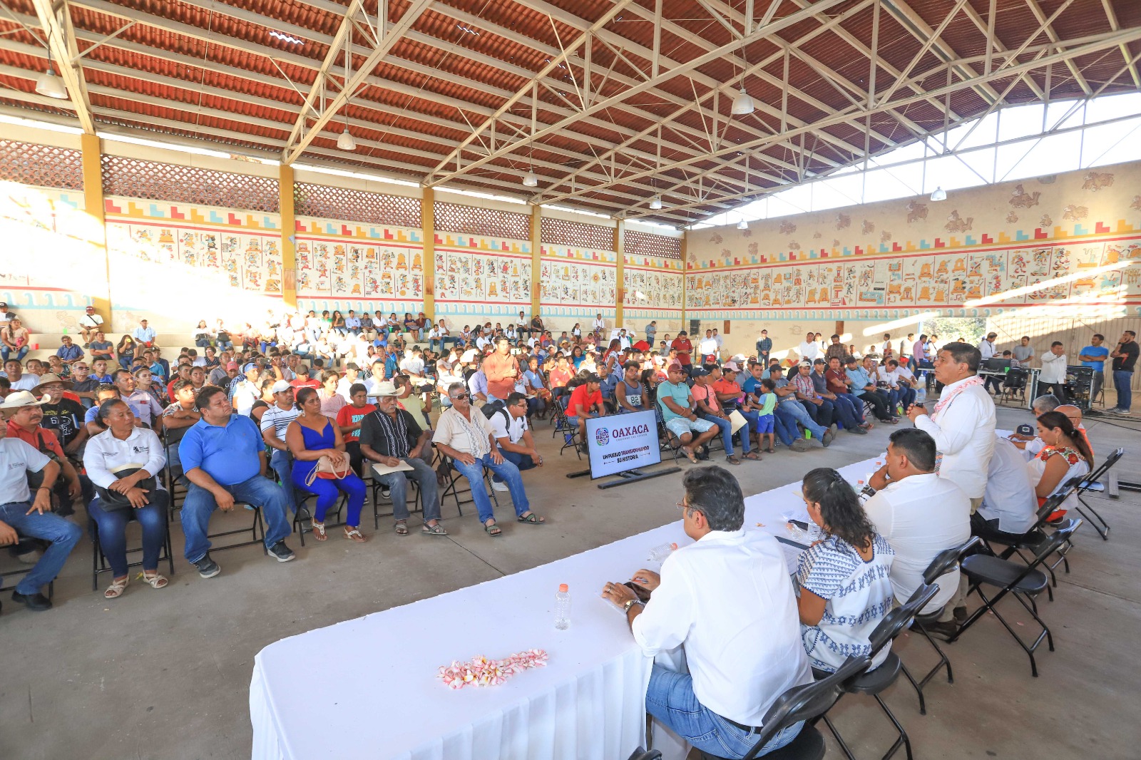 En el salón de usos múltiples de esta comunidad, considerada la más antigua de la costa oaxaqueña, el titular del Poder Ejecutivo conoció las cinco acciones desarrolladas por el presidente municipal, Jesuhandy Alberto Conde Gómez, que benefician a las y los habitantes de sus 55 comunidades que la conforman.