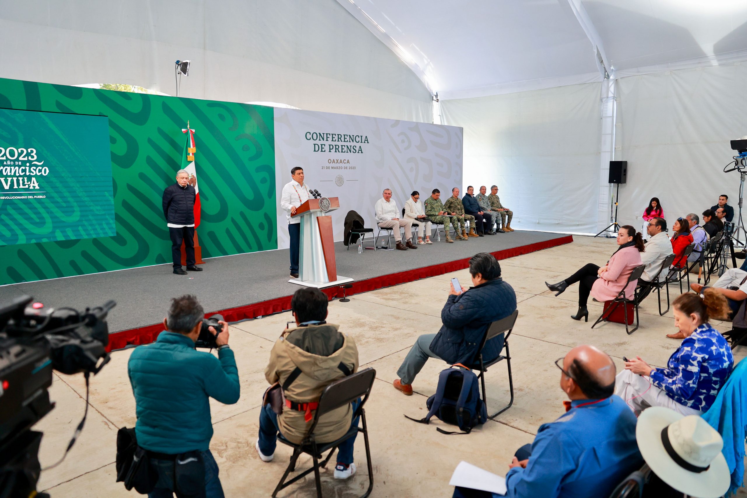 Así lo anunciaron el Gobernador de Oaxaca Salomón Jara Cruz y el Presidente de México Andrés Manuel López Obrador, durante la Conferencia de Prensa Matutina que el Jefe Supremo de las Fuerzas Armadas realizó en su 31 visita a la entidad, donde arribó para asistir a la Ceremonia Conmemorativa por el 217 Aniversario del Natalicio de Benito Juárez García, y previamente encabezó la Mesa Estatal de Seguridad y Paz en la 28ª Zona Militar.