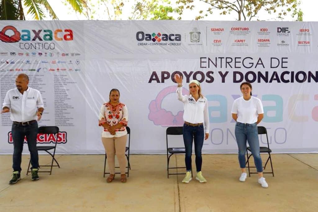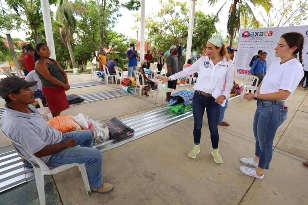 “Me encuentro el día de hoy en este municipio de la Costa, atendiendo a mis paisanas y paisanos, y cumpliendo con la instrucción de mi esposo, el gobernador Alejandro Murat; todas y todos los afectados serán atendidos, y contarán con todo nuestro apoyo hasta el último momento. No están solos y juntos seguiremos de pie para devolverle a Oaxaca la grandeza que radica en sus pueblos”, señaló Morán de Murat.