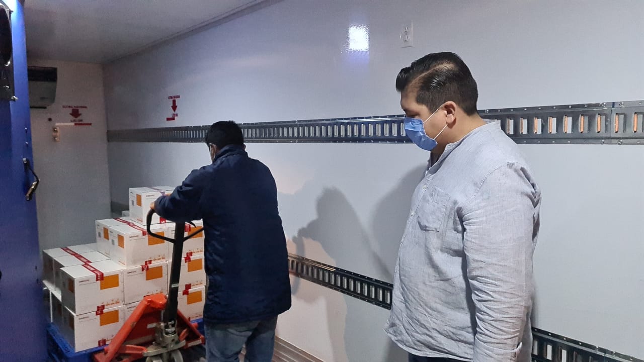 Oaxaca de Juárez, Oax. 14 de marzo de 2021.- En representación del titular de los Servicios de Salud de Oaxaca (SSO), Juan Carlos Márquez Heine, el director de Prevención y Promoción de la institución, Jorge Concha Suárez informó que durante la última semana arribaron a la entidad, dos cargamentos de vacunas de la farmacéutica Pfizer-BioNTech, la primera con 30 mil 225 dosis del biológico contra la COVID-19.