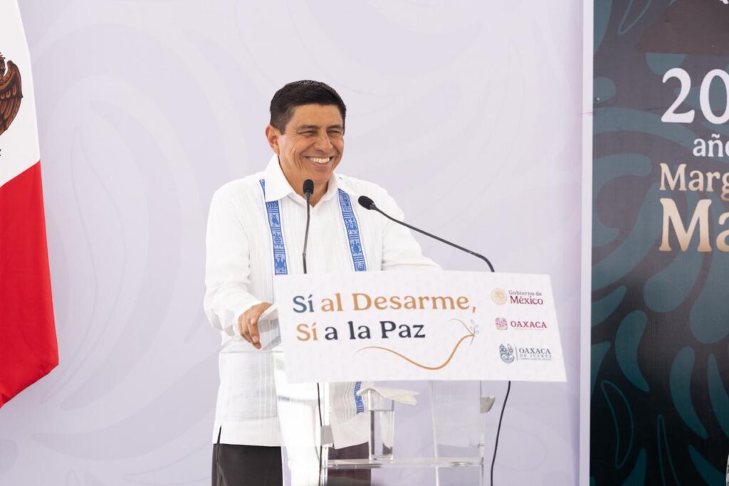 Oaxaca de Juárez, Oax., 22 de abril de 2026.- El Gobernador del Estado Salomón Jara Cruz afirmó que Oaxaca se suma con convicción al programa federal “Sí al desarme, sí a la paz”, porque esta última se construye con participación, justicia y oportunidades.