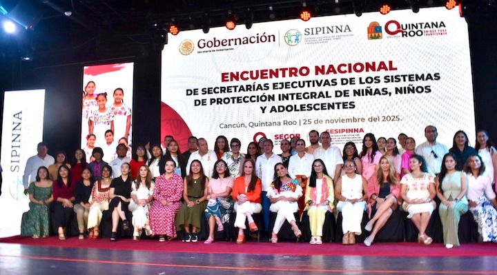 Cancún, Q.R, 26 de noviembre de 2025.— Oaxaca fue reconocido como uno de los 10 estados con mejores prácticas en protección a la niñez, durante la Trigésima Sesión Ordinaria de la Comisión de Secretarías Ejecutivas de Protección Integral del Sistema Nacional y de las Entidades Federativas (COMSE).