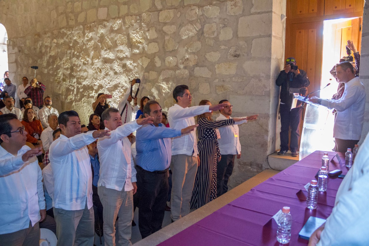 En presencia de las y los Secretarios ejecutivos de los institutos electorales del país, el Gobernador destacó que este pensamiento es el que movió a grandes oaxaqueños referentes en la historia de México, como lo fue don Benito Juárez García, Porfirio Díaz; los hermanos Jesús, Enrique y Ricardo Flores Magón, así como José Vasconcelos.