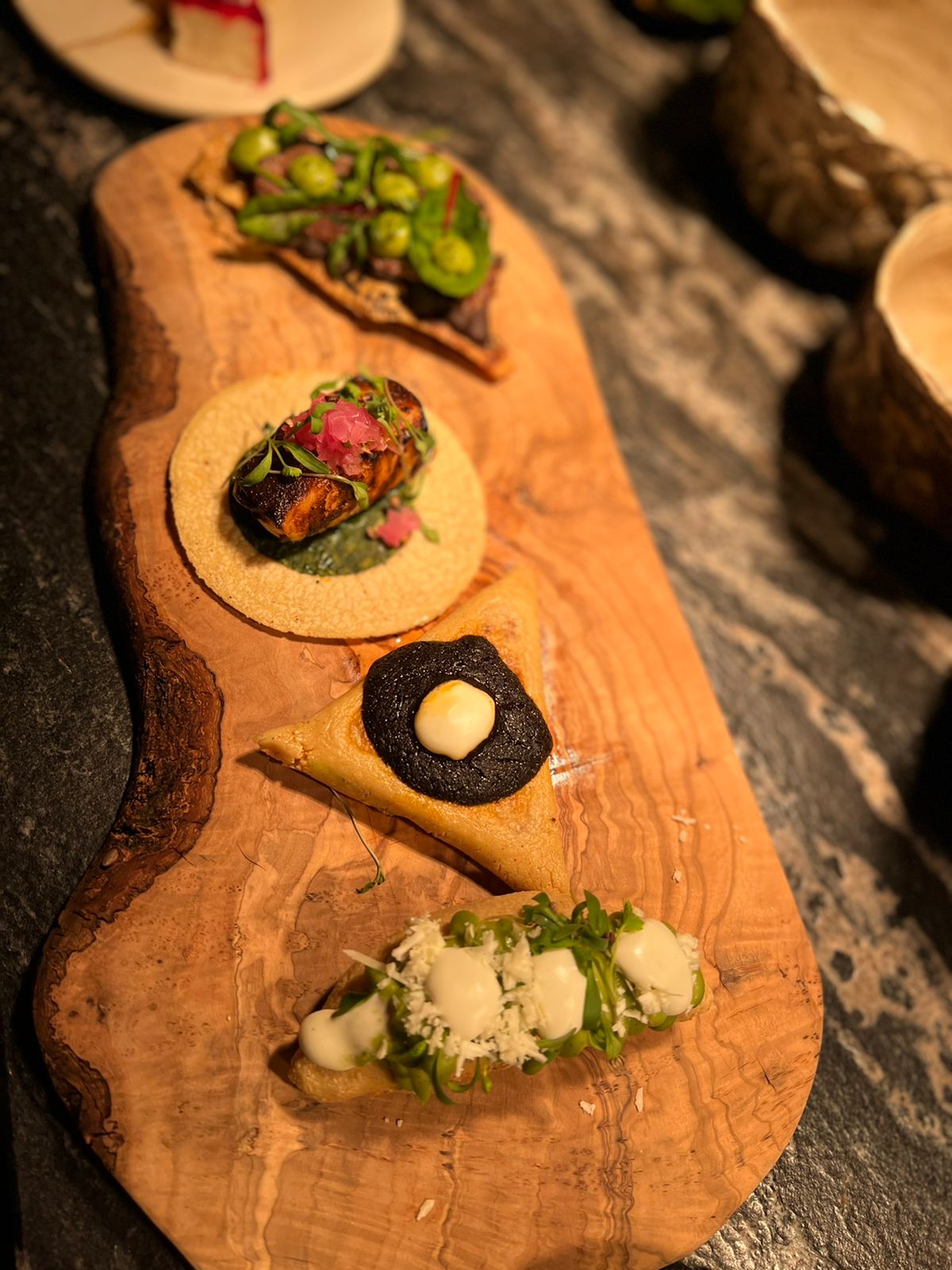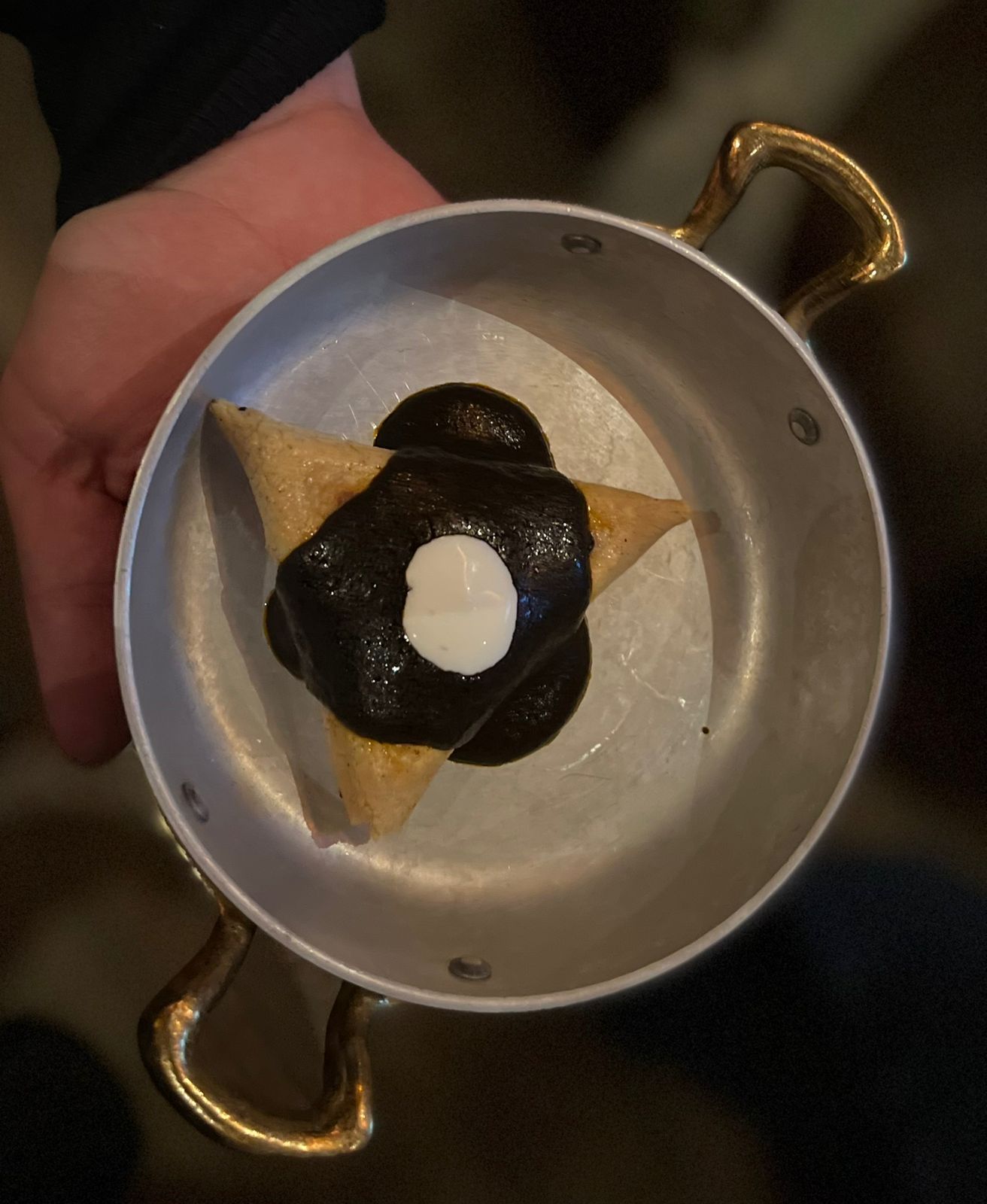 También cocinaron Totopos de maíz con guacamole y chapulines; Sopa de milpa con maíz cacahuacintle, consomé de hongos, chochoyotes y flor de calabaza; Tlayuda con tasajo, verdolagas, frijol y quelites; Tetela de maíz criollo rellena de guajolote y mole negro.