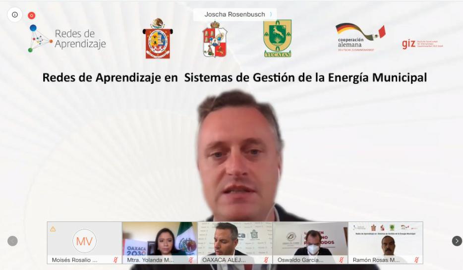 Oaxaca de Juárez, Oax. 21 de septiembre de 2020.- Con el objetivo de construir las bases de un Oaxaca sostenible, la administración que encabeza el gobernador Alejandro Murat Hinojosa, con el acompañamiento de la Agencia de Cooperación Alemana (GIZ), participó en el lanzamiento del Proyecto de “Implementación de Redes de Aprendizaje en Sistemas de Gestión de Energía” a nivel municipal, para que en el 2021 las localidades que participan cuenten con ahorro y eficiencia de consumo energético con energías alternativas.