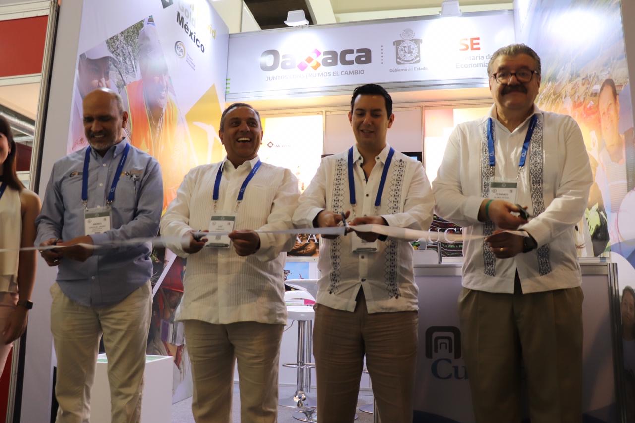 En el stand de Oaxaca, se exponen las oportunidades que la entidad representa para la inversión, por su potencial geográfico, geológico, climático, eólico y recursos naturales. Fue inaugurado por el secretario de Economía, Juan Pablo Guzmán Cobián y los gerentes de Don David Gold y Minera Cuzcatlán, Andrés González y Luis Camargo, respectivamente.