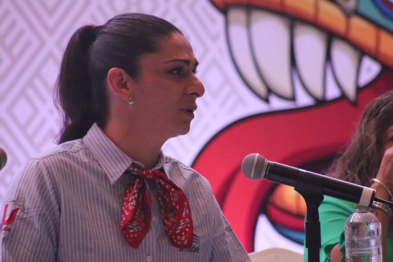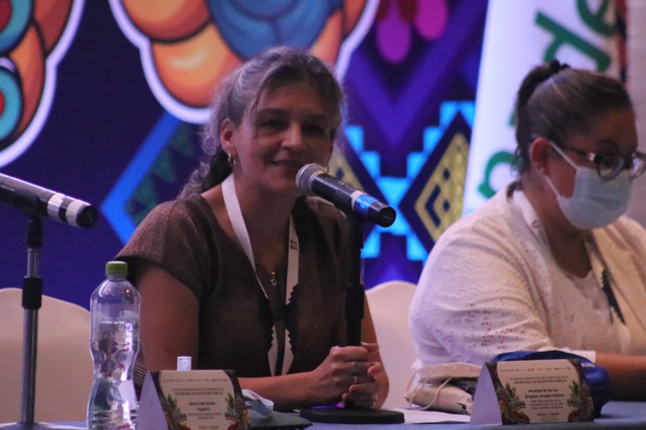 - La directora del Incude Oaxaca, Montserrat de los Ángeles Aragón Heinze, dio la bienvenida a las y los asistentes a nombre del gobernador Alejandro Murat