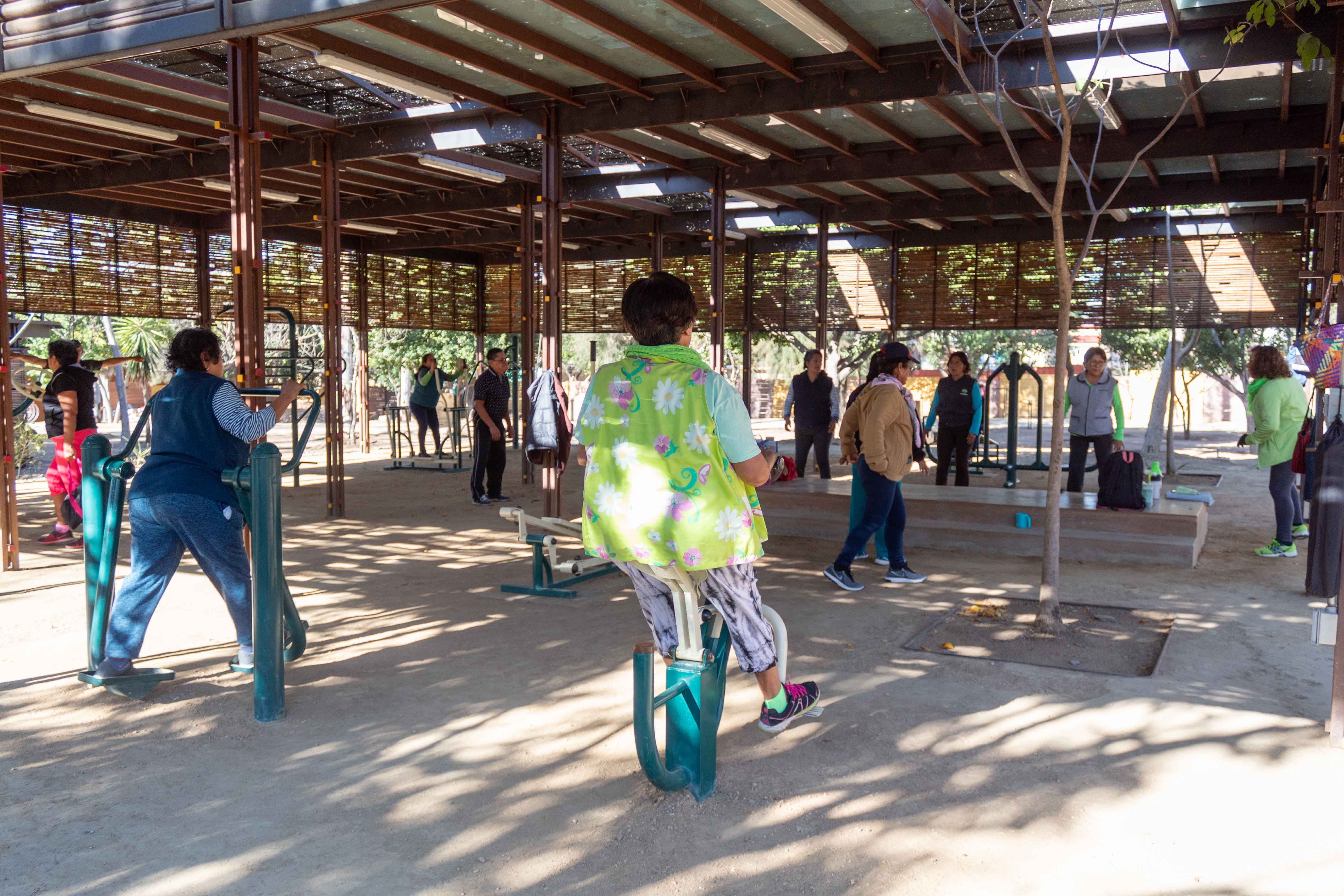 Algunas personas más, prefieren integrarse a los entrenamientos en el Circuito de la Salud que comienzan a las 8:00 horas con la guía de los instructores que conocen el funcionamiento de cada uno de los aparatos integrados en el gimnasio al aire libre, así como sus beneficios al cuerpo humano.