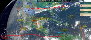 Oaxaca de Juárez, Oax. 19 de agosto de 2022.  Para las siguientes horas del fin de semana, la Coordinación Estatal de Protección Civil de Oaxaca (CEPCO) dio a conocer que la onda tropical número 23 que mantiene una trayectoria hacia Oaxaca y Guerrero, en interacción con una zona de baja presión con potencial para desarrollo ciclónico, que se dirige hacia la zona sur del Golfo de México, mantendrá el temporal de lluvias en gran parte del estado, con precipitaciones de intensidad variable, sin representar riesgos mayores en caso de evolucionar a ciclón tropical.