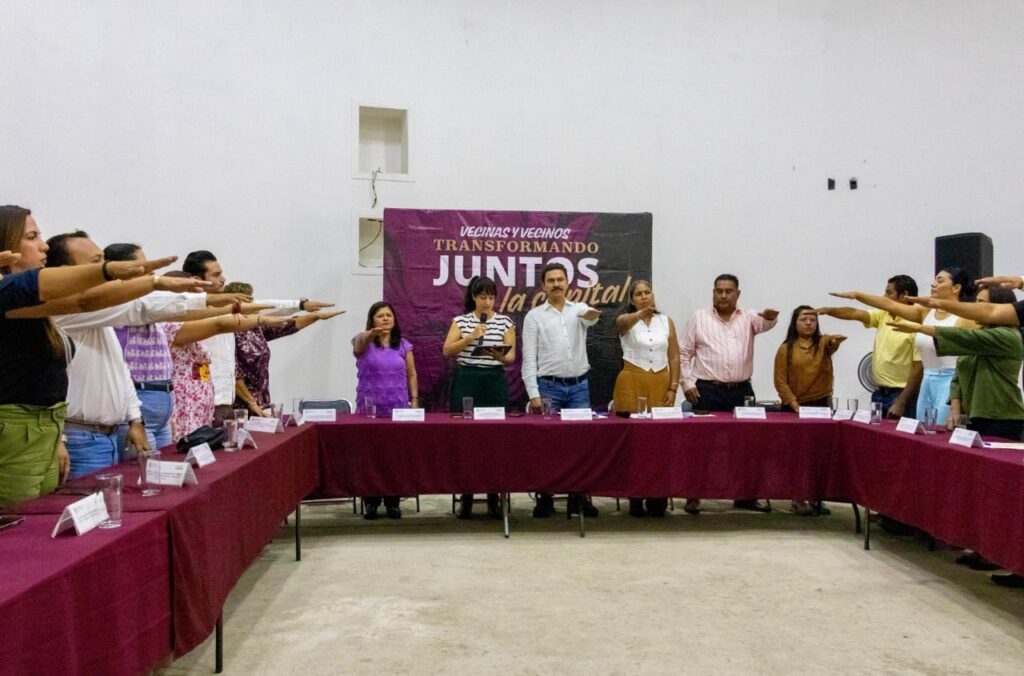Junto al edil, Raymundo Chagoya Villanueva, la secretaria Karime Unda Harp tomó protesta a las y los integrantes de dicho ente, que surge con la encomienda de generar estrategias de mitigación, adaptación y gestión de riesgos ante este fenómeno.