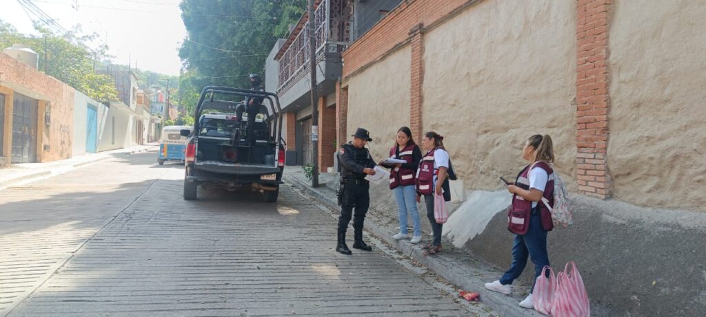 Oaxaca de Juárez, Oax. 7 de julio de 2024.- Más de 100 integrantes de los cuerpos policiales pertenecientes a la Secretaría de Seguridad y Protección Ciudadana (SSPC) participaron en el Mega Tequio Oaxaca Unida Contra el Dengue, para facilitar las labores de personas voluntarias y del sector salud quienes este fin de semana visitaron los hogares oaxaqueños brindando herramientas e información para identificar criaderos del mosquito Aedes Aegypti y el uso correcto del abate para la eliminación de larvas.
