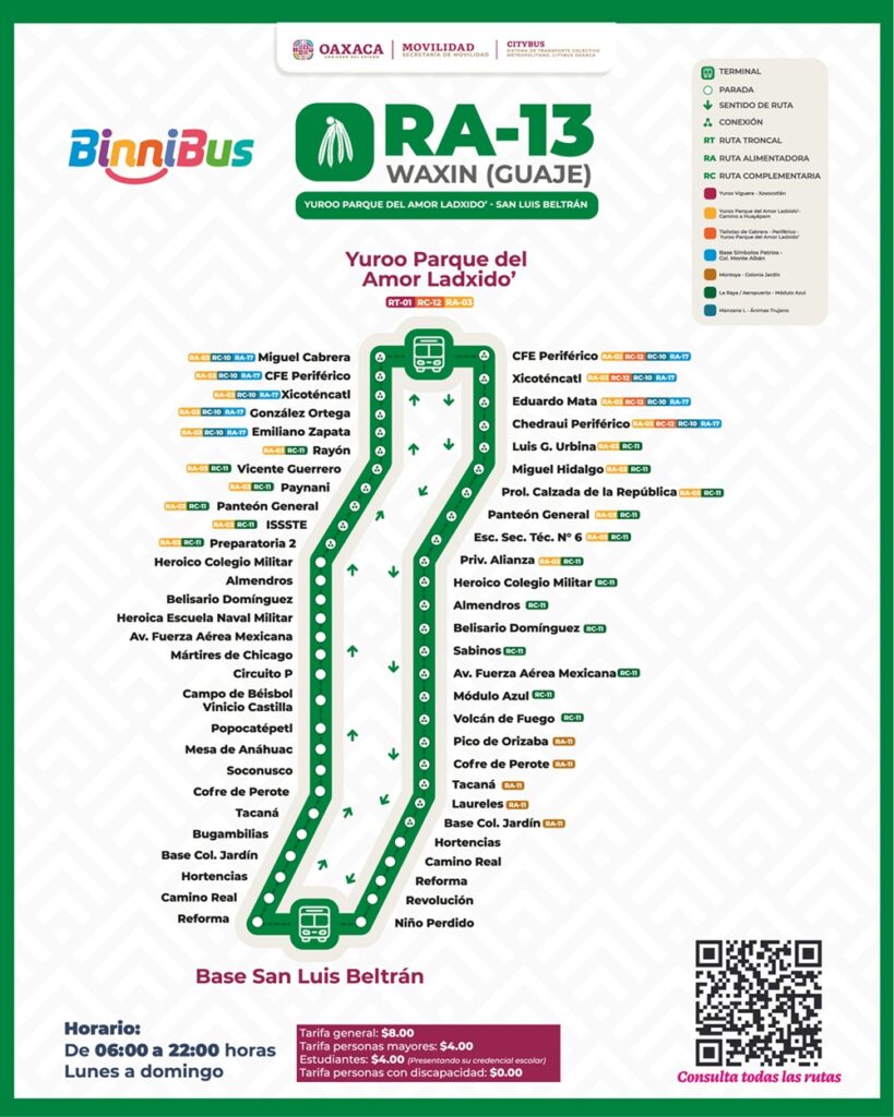 Con la puesta en operación de este trayecto, el BinniBus suma 21 rutas en calle, lo que garantiza un transporte digno, seguro, accesible e inclusivo, que responde a las necesidades de tránsito de las familias oaxaqueñas.