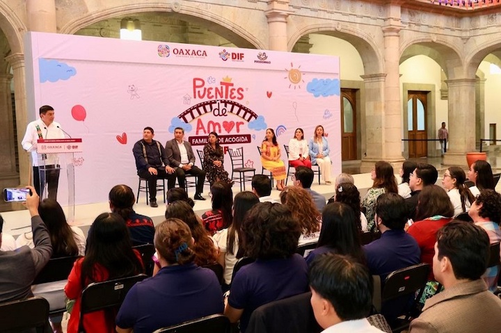 Oaxaca de Juárez, Oax. 18 de noviembre de 2025.- El Gobernador Salomón Jara Cruz encabezó el arranque del programa Puentes de Amor, Familias de Acogida del Sistema DIF Oaxaca, que marca un precedente en la protección de los derechos de niñas, niños y adolescentes; quienes ahora pueden crecer en un hogar digno, afectivo y seguro.