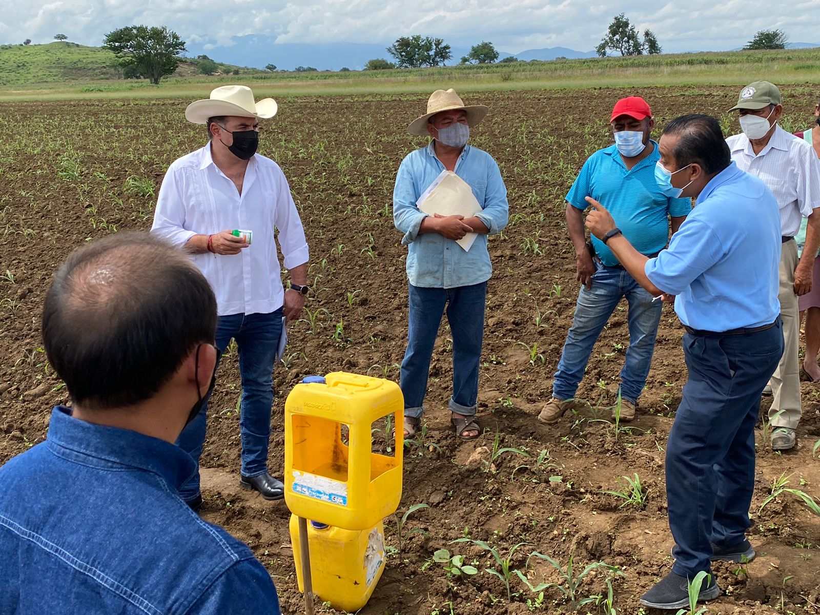 Reyes Mantecón, Oax. 24 de junio de 2021.- En apoyo a la producción de maíz, la Secretaría de Desarrollo Agropecuario, Pesca y Acuacultura (Sedapa), el Servicio Nacional de Sanidad, Inocuidad y Calidad Agroalimentaria (Senasica) y el Comité Estatal de Sanidad Vegetal de Oaxaca (Cesvo), dieron el banderazo de inicio a la campaña de manejo fitosanitario de dicho cultivo.