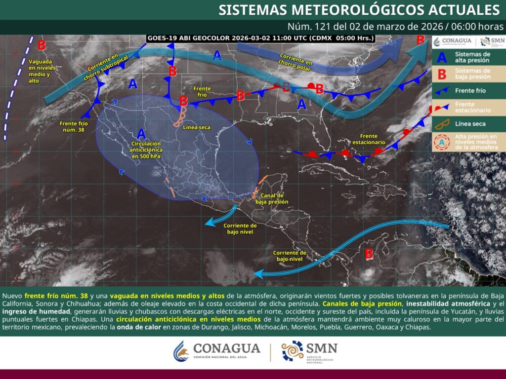 Oaxaca de Juárez, Oax., 2 de marzo de 2026.– La Coordinación Estatal de Protección Civil y Gestión de Riesgos (CEPCyGR) informa que se prevé tiempo estable, con cielo despejado a poco nuboso, intensa radiación solar y baja probabilidad de lluvias, sin descartar la presencia de algún chubasco aislado ocasionado por choque térmico y efectos locales.