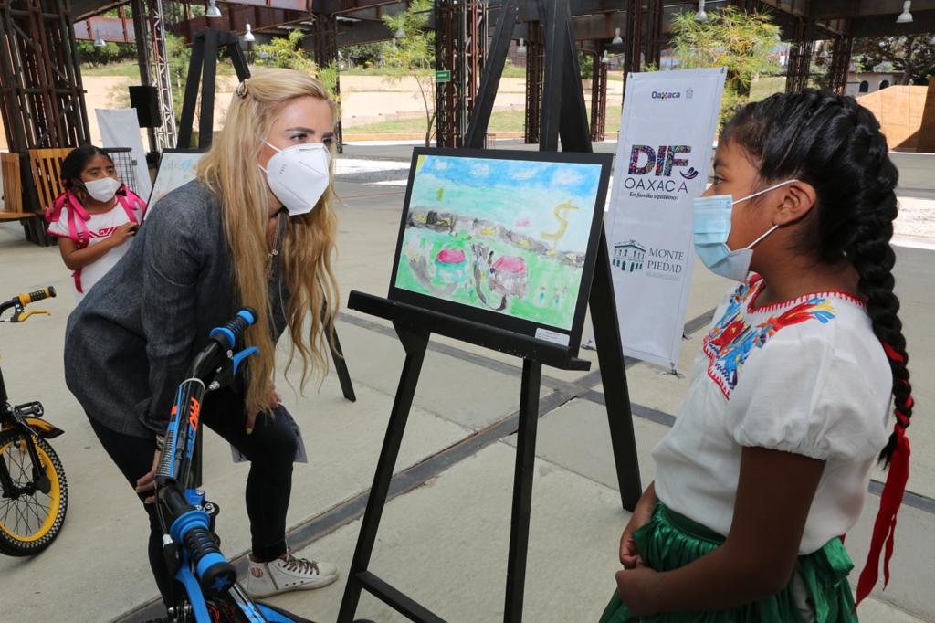 Tlalixtac de Cabrera, Oax. 5 de octubre de 2020.- La Presidenta Honoraria del Sistema para el Desarrollo Integral de la Familia (DIF) Oaxaca, Ivette Morán de Murat, y la directora general del Instituto Oaxaqueño de Atención al Migrante (IOAM), Aida Ruiz García, realizaron la premiación a las niñas y niños ganadores del Tercer Concurso de Dibujo y Pintura Infantil: “Mi Familia Migrante”.