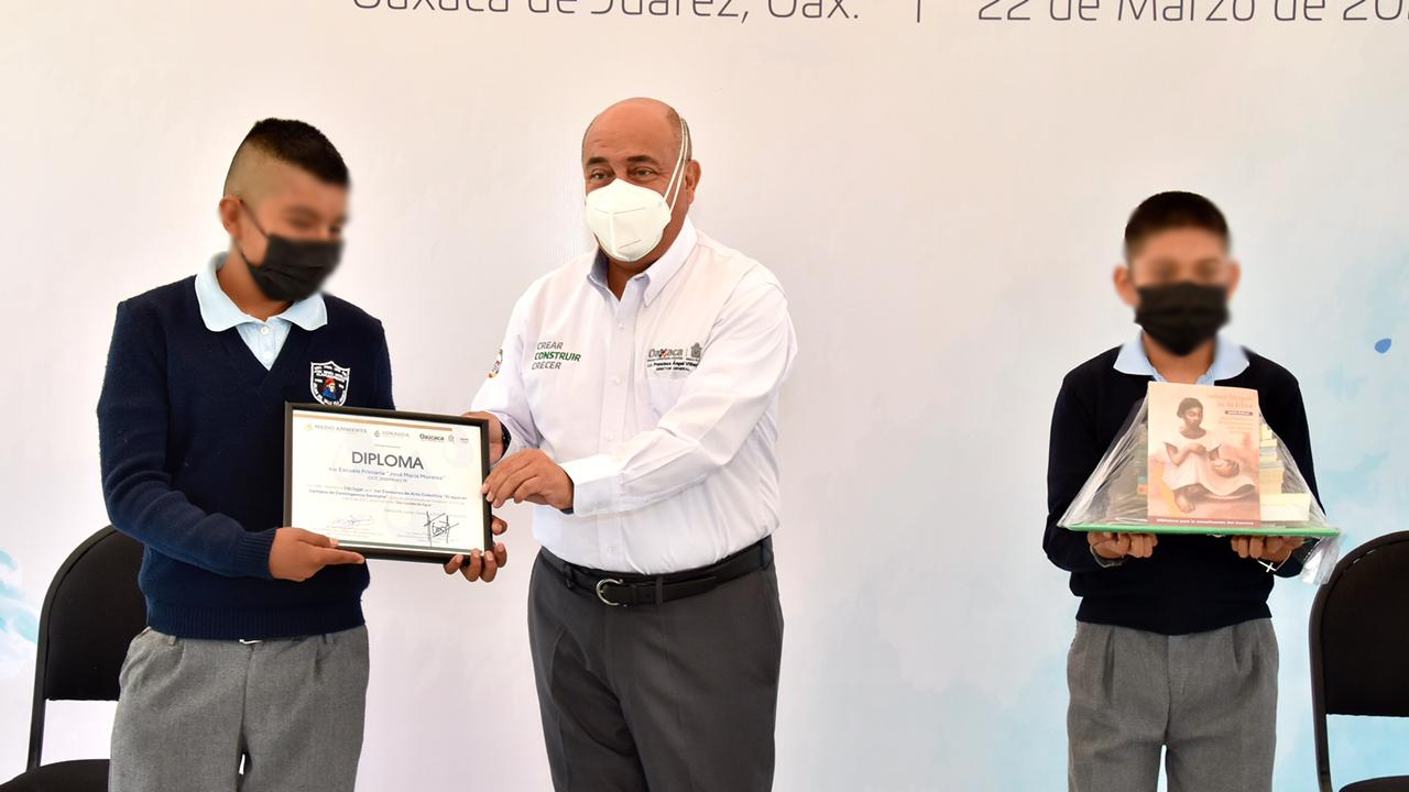 “Que esas ideas que plantearon en sus trabajos sea una luz de esperanza para su generación, para un mejor país y mundo”, indicó el servidor público a las y los estudiantes que asistieron a la ceremonia de premiación, acompañados por sus madres, padres y docentes, con apego a las medidas sanitarias decretadas.