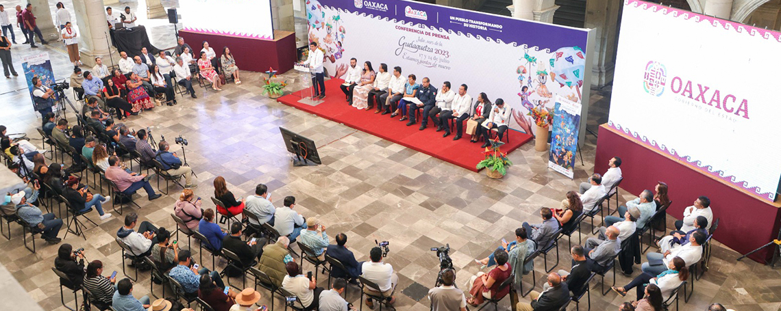 Oaxaca de Juárez, Oax. 5 de junio de 2023.- Durante la conferencia semanal en Palacio de Gobierno encabezada por el Mandatario Estatal Salomón Jara Cruz, el titular de la Secretaría de Seguridad y Protección Ciudadana (SSPC) Iván García Álvarez señaló que para la Guelaguetza 2023 se desplegarán a más de 600 policías.
