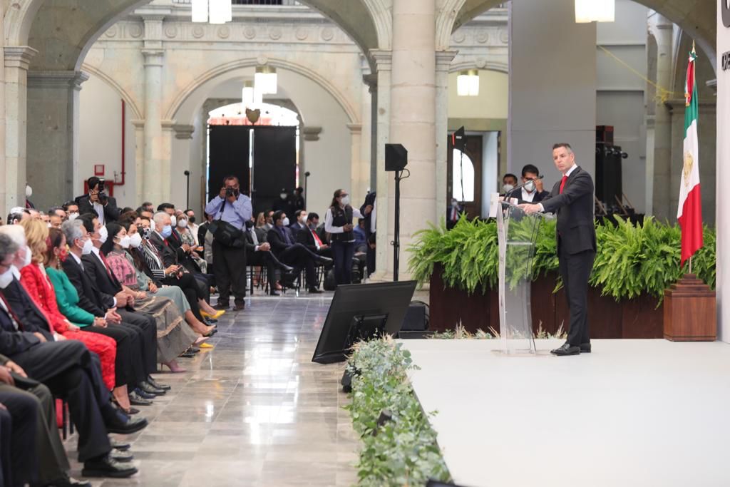 En este acto al que también asistieron representantes de los sectores empresarial, social, cultural y de la academia, el gobernador Alejandro Murat detalló las acciones realizadas en materia de seguridad, educación, infraestructura, turismo y salud. Expresó que ante los embates que se han presentado en la entidad como las inundaciones, sequias, sismos y la pandemia: los oaxaqueños han sabido levantarse y seguir avanzando, y Oaxaca se ha convertido en una de las entidades más fuertes, resilientes y solidarias de México.