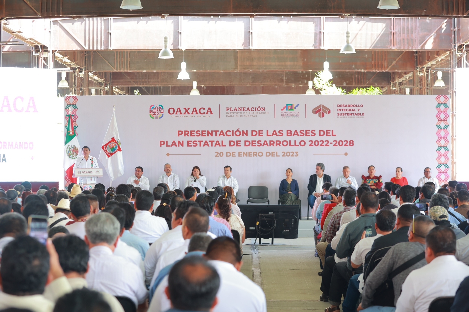 En el evento se anunció que, el PED 2022-2028 estará integrado por cinco ejes centrales: 1) Estado de bienestar para todas y todos los oaxaqueños. 2) Gobierno honesto, cercano y transparente al servicio de los pueblos y comunidades. 3) Seguridad y justicia para vivir en paz. 4) Crecimiento y desarrollo económico para las ocho regiones. 5) Infraestructura y servicios públicos para el desarrollo de Oaxaca.