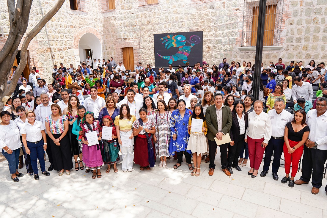Asistieron también la rectora de la Universidad Tecnológica de los Valles Centrales de Oaxaca (UTVCO), Tania López López; el rector de la Universidad Autónoma “Benito Juárez” de Oaxaca (UABJO), Cristian Carreño López y el titular de la Fiscalía General del Estado de Oaxaca (FGEO), José Bernardo Rodríguez Alamilla, quienes junto a las autoridades estatales y federales entregaron reconocimientos a niñas y niños que forman parte de la red de Impulsores de la Transformación de Oaxaca.