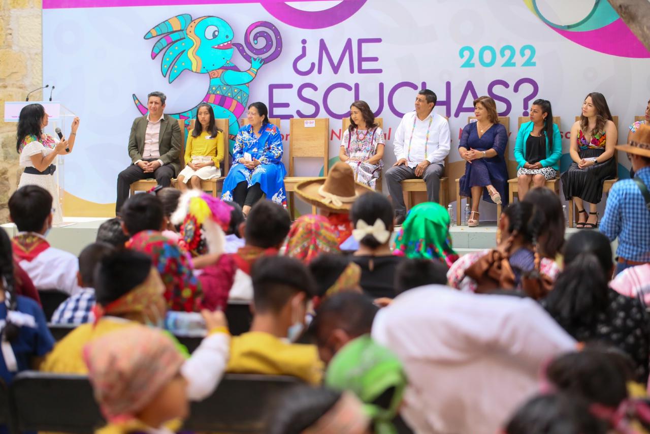 Bajo un programa artístico, cuya protagonista fue la poesía, la Danza de la Pluma y de los Zancudos de Zaachila interpretados por niñas y niños, la titular del Sistema Nacional  del DIF Nuria Fernández Espresate, compartió que los resultados de esta encuesta han sido presentados en 21 estados y ha contado con la participación de ocho gobernadores y fiscales de justicia, debido a que su prioridad es que las autoridades conozcan el sentir de la niñez y adolescencia para generar entornos saludables para su pleno desarrollo.
