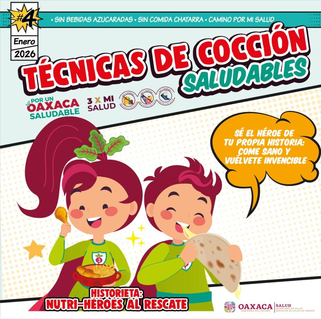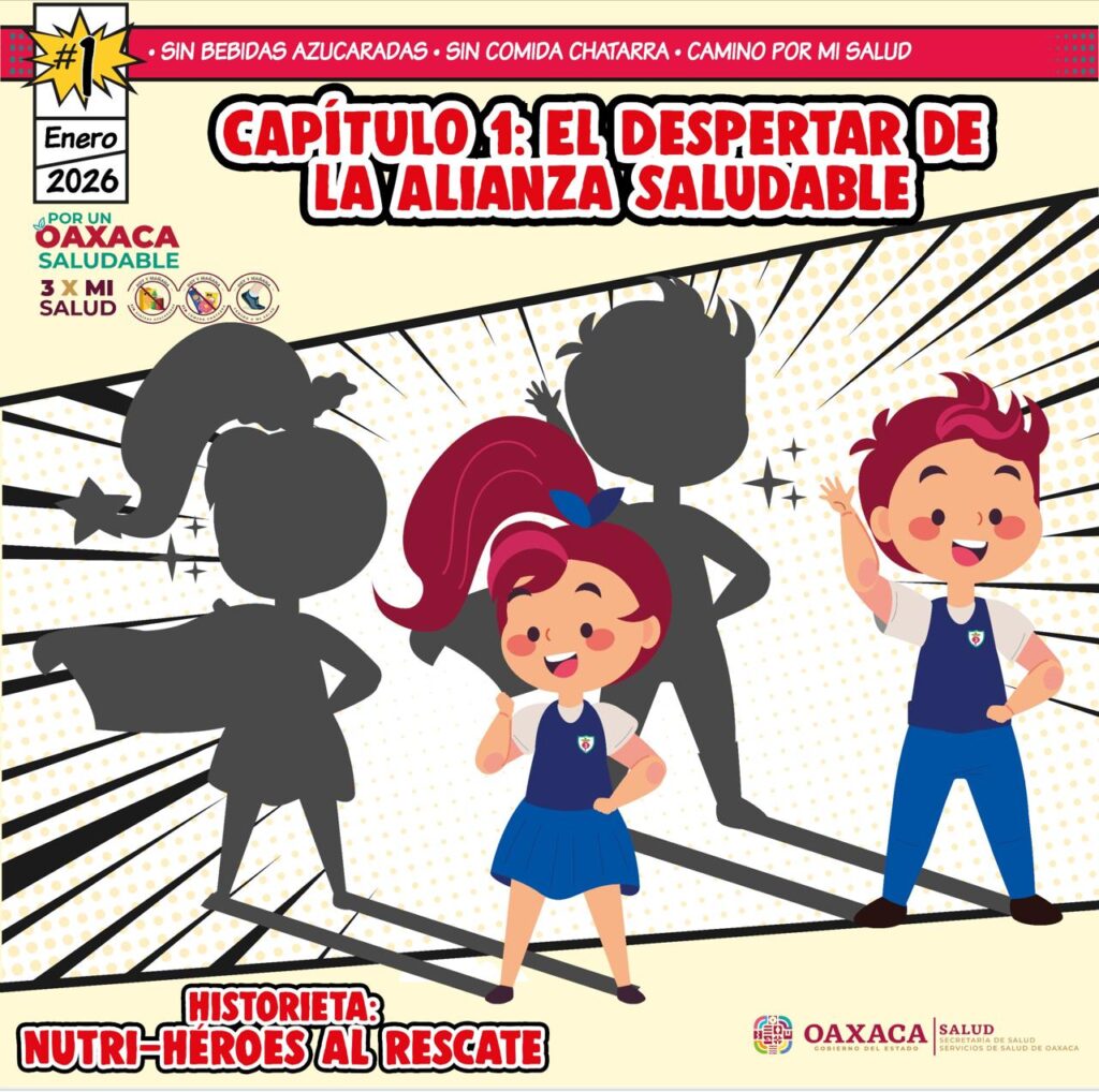 Oaxaca de Juárez, Oax., 29 de enero de 2026.- Con el objetivo de fortalecer la promoción de hábitos sanos desde edades tempranas, Servicios de Salud de Oaxaca (SSO) a través del Departamento de Prevención y Promoción de la Salud, presentó la historieta educativa “Nutri-Héroes al Rescate”, una herramienta didáctica dirigida a niñas y niños.