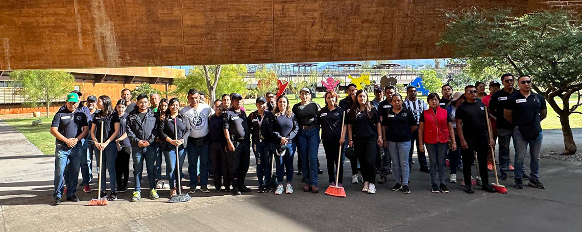 Más de 130 personas que trabajan en el Gobierno estatal se dieron cita en el CCCO para realizar labores de barrido, lavado de pisos y muros, recolección de basura, deshierbe, desazolve, así como mantenimiento preventivo de las instalaciones.