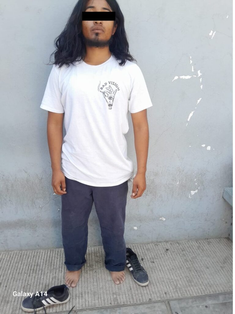 Oaxaca de Juárez, Oax.; 20 de abril de 2025. Las personas identificadas como E. U. A. R. e I. H. G., de 24 y 21 años de edad, respectivamente, fueron detenidas por elementos de la Policía Estatal como probables responsables de delitos contra la salud, al haberles localizado hierba con características de la marihuana.