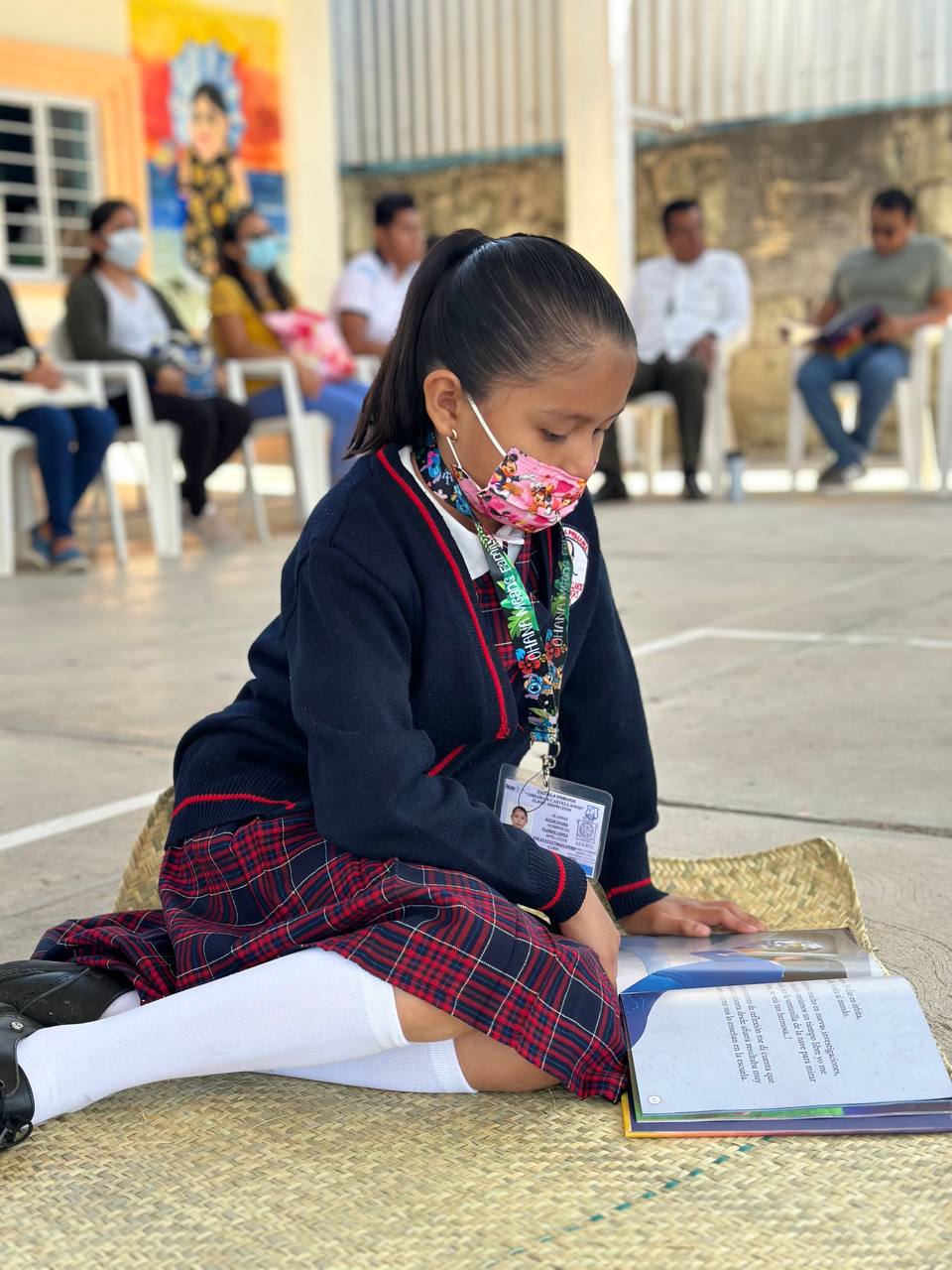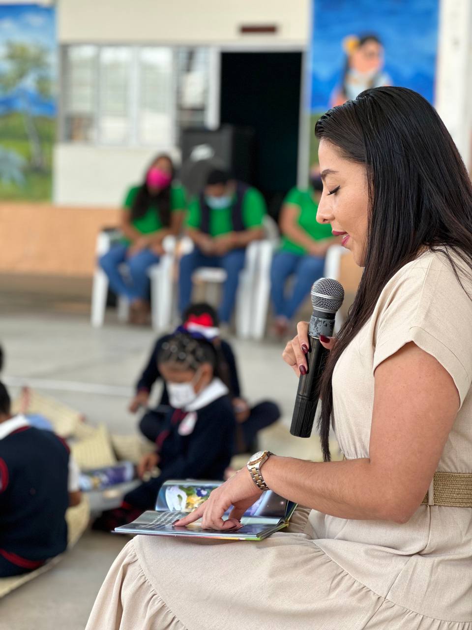 El círculo de lectura se realizó en la explanada del centro educativo y estuvo a cargo de la subsecretaria de Egresos de la Secretaría de Finanzas, Andrea Acevedo Merlin, quien acudió en representación del titular de la dependencia, Farid Acevedo López.