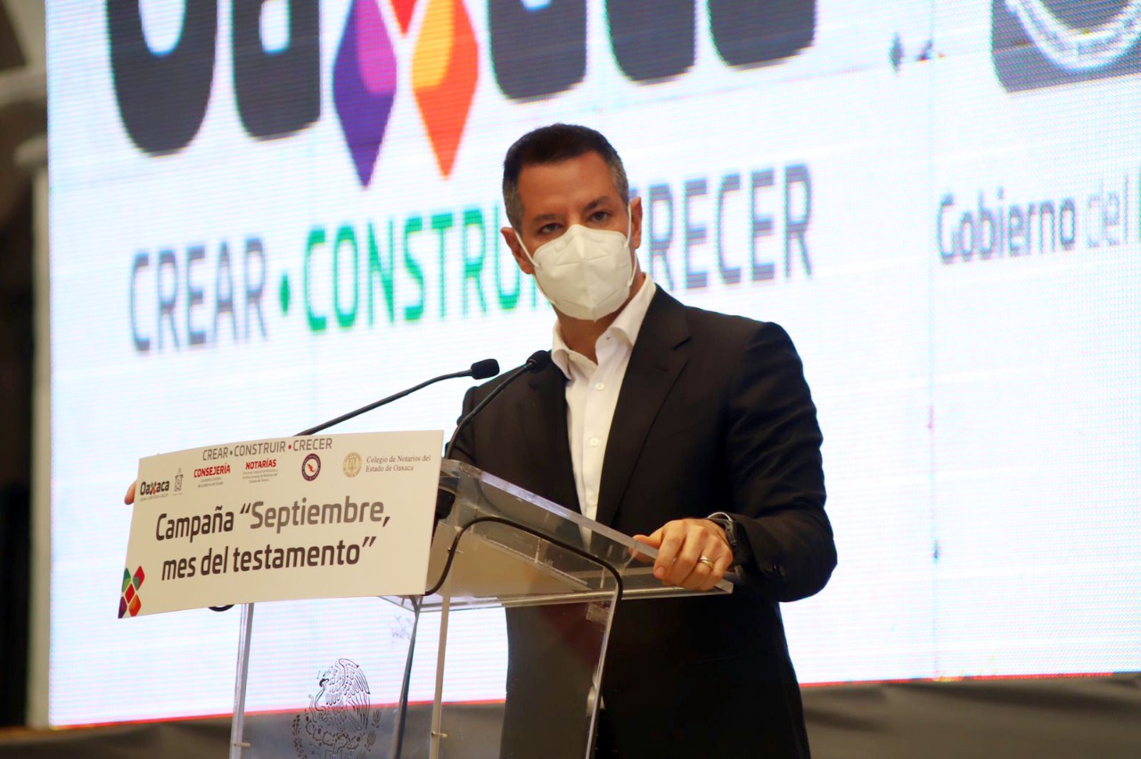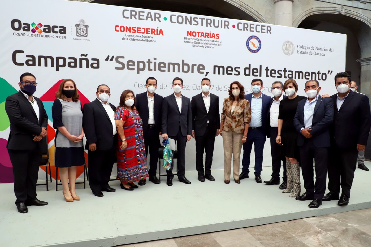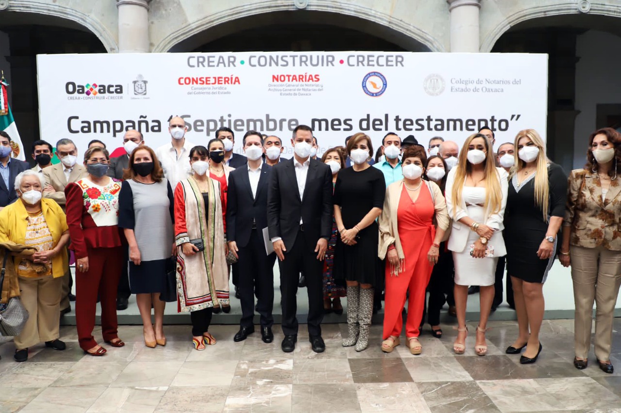 Aseveró que con ese propósito, el Gobierno del Estado y las y los notarios públicos de Oaxaca, conscientes de la importancia de dar cumplimiento a esta gran responsabilidad, unen trabajo y esfuerzo para afianzar la cultura del testamento en la entidad, garantizando con ello que todo bien y derecho que forma parte del patrimonio de una persona, se transmita después de su muerte –de forma ordenada y pacífica– a quien él o ella decida.