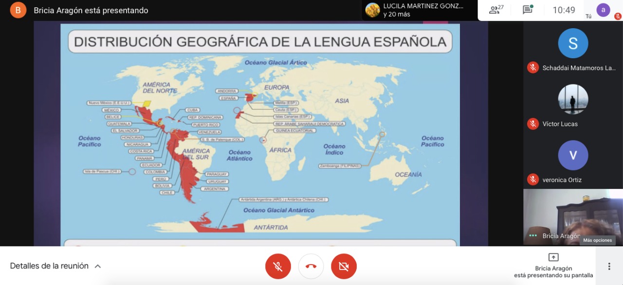 La capacitadora, Bricia Aragón, compartió con las y los asistentes al curso virtual la evolución histórica del español, desde sus orígenes en el latín, hasta el vocabulario que se usa actualmente.