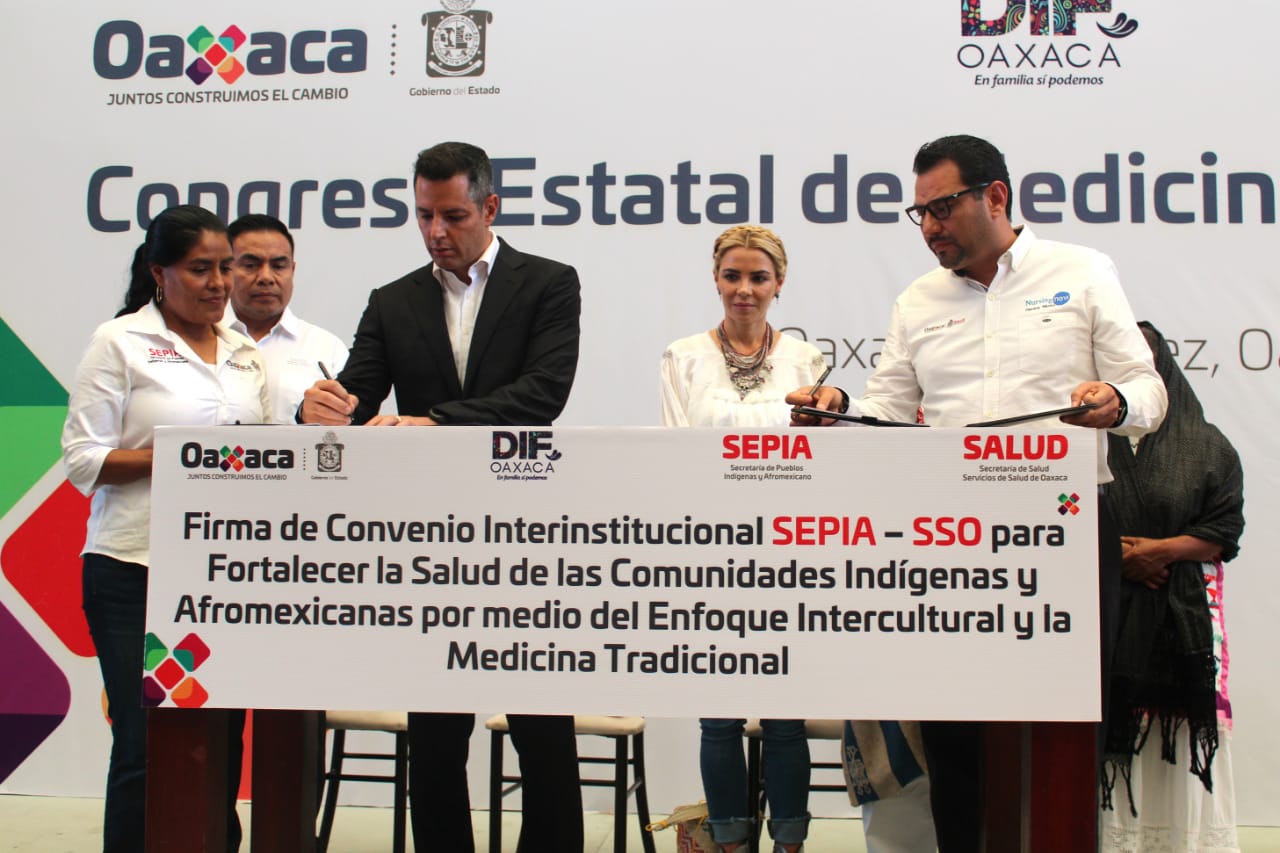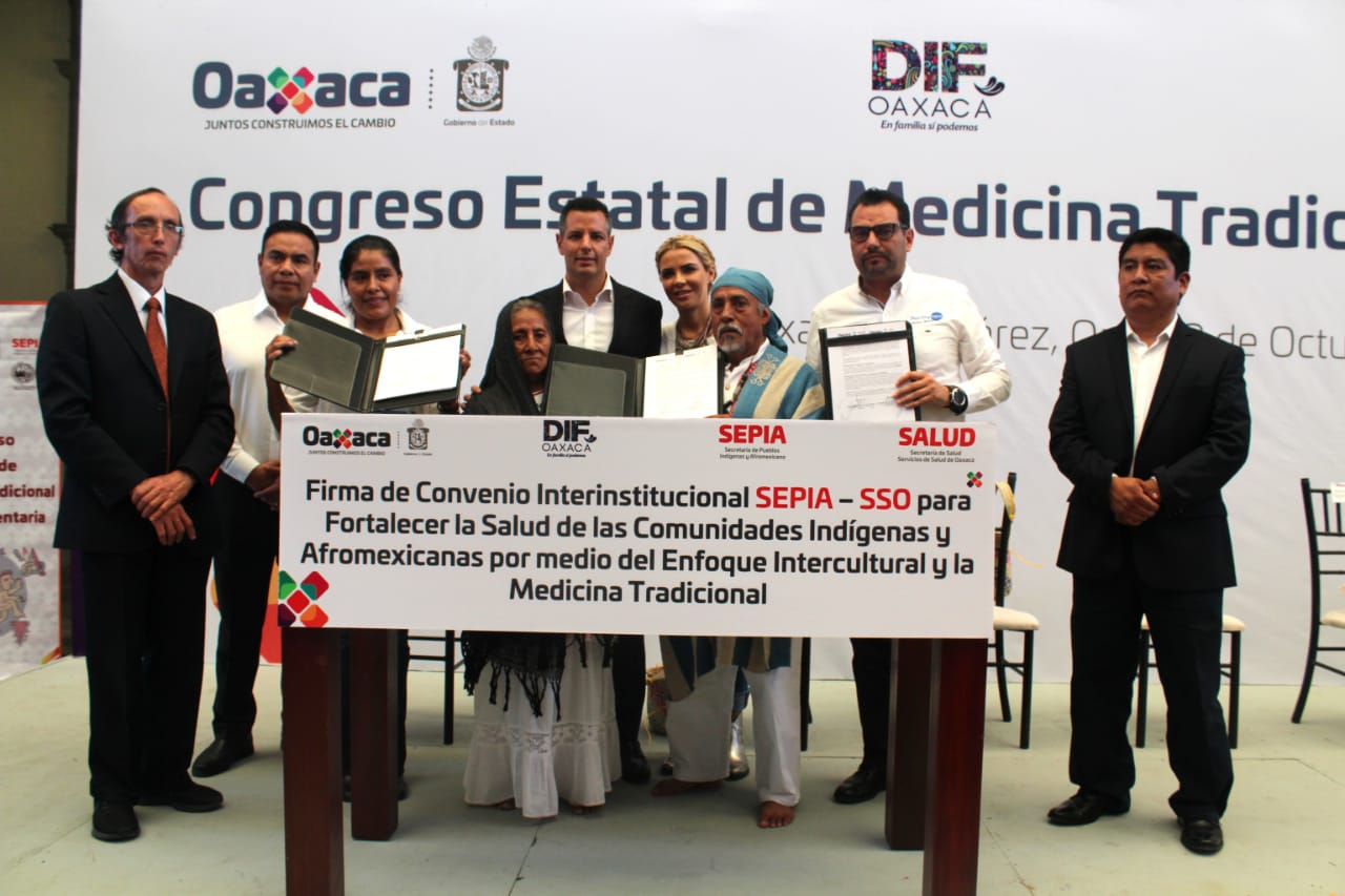 A través de este convenio de colaboración que firmaron los titulares de Sepia y SSO, Eufrosina Cruz Mendoza y Donato Casas Escamilla, respectivamente, se promueve el intercambio de conocimientos y la salud intercultural, y se establecen las bases para reconocer e incorporar la medicina tradicional al Sistema de Salud de Oaxaca.