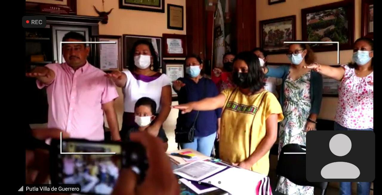 Oaxaca de Juárez, Oax., 05 de septiembre de 2021.- En Sesión virtual de Cabildo presidida por el munícipe de Putla Villa de Guerrero, Manuel Guzmán Carrasco, la titular de la Secretaría de las Mujeres de Oaxaca (SMO), Ana Vásquez Colmenares Guzmán tomó protesta a integrantes del Consejo Municipal para la Prevención, Atención, Sanción y Erradicación de la Violencia de Género contra las Mujeres conforme a lo establecido en la Ley Estatal de Acceso de las Mujeres a una Vida Libre de Violencia y se congratuló porque el Ayuntamiento sigue cumpliendo con la Alerta de Género.