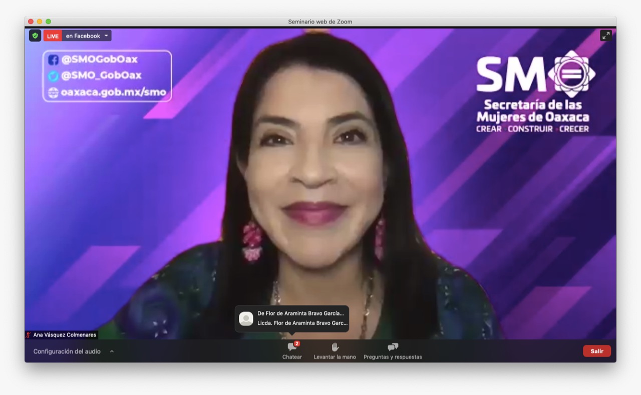 Oaxaca de Juárez, Oax. 10 de septiembre de 2021. Con el objetivo de analizar y visibilizar la relación de la violencia y la desigualdad estructural entre mujeres y hombres en razón al sexo, así como sus efectos, la Secretaría de las Mujeres de Oaxaca (SMO) realizó la conferencia virtual ‘La diferencia sexual, motivo de opresión y potencia liberadora’ a cargo de la filósofa argentina María José Minetti.