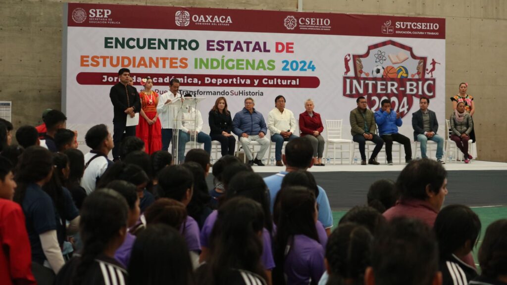 Oaxaca de Juárez, Oaxaca. 4 de diciembre de 2024.- Para promover el deporte, trabajo en equipo y la disciplina entre la juventud, el Colegio Superior para la Educación Integral Intercultural de Oaxaca (CSEIIO) realizó el Encuentro Estatal de Jóvenes Indígenas INTERBIC 2024, Jornada Académica, Deportiva y Cultural, en el Gimnasio Hermanos Flores Magón.
