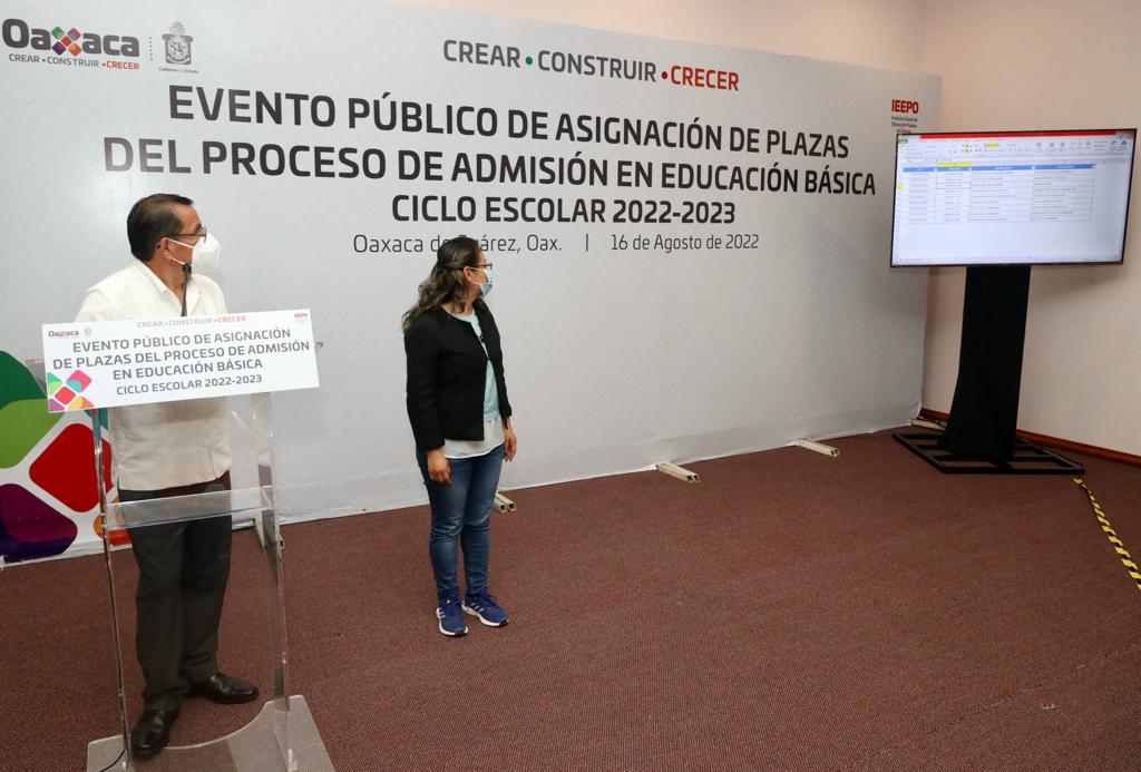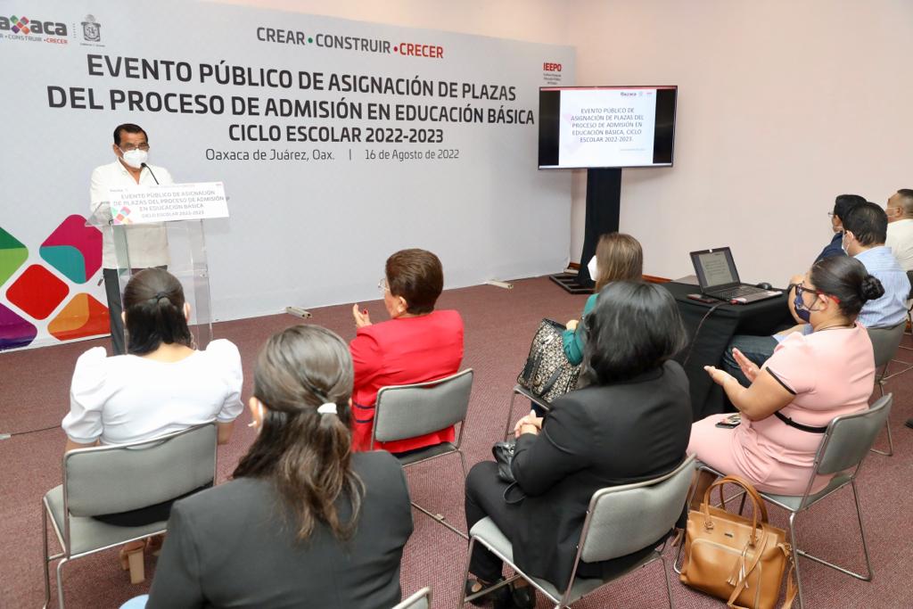 Oaxaca de Juárez, Oax, 16 de agosto de 2022.- Con apego a la legalidad, normatividad y transparencia, el Instituto Estatal de Educación Pública de Oaxaca (IEEPO), en conjunto con la delegación federal de la Secretaría de Educación Pública (SEP), realizó el Evento Público de Asignación de plazas y Centros de Trabajo del proceso para la Admisión en Educación Básica ciclo escolar 2022-2023 a egresados de las 11 Escuelas Normales.