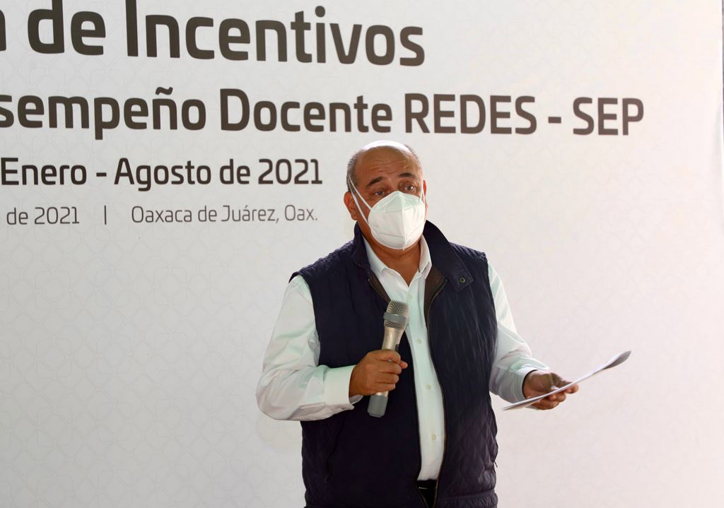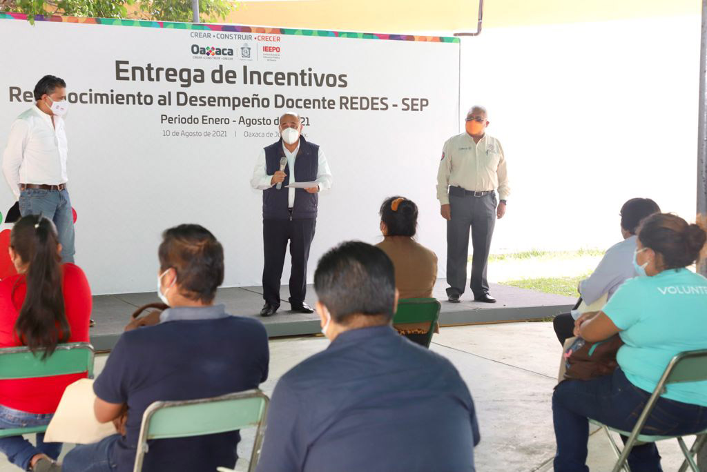 Oaxaca de Juárez, Oax. 10 de agosto de 2021. Con apego a los protocolos y medidas sanitarias decretadas, el director general del Instituto Estatal de Educación Pública de Oaxaca (IEEPO), Francisco Ángel Villarreal, inició la entrega de incentivos del programa Reconocimiento al Desempeño Docente (REDES-SEP), del período enero-agosto, por un monto total de aproximadamente 35 millones de pesos en beneficio de tres mil 018 profesores de escuelas primarias que participan en este esquema.